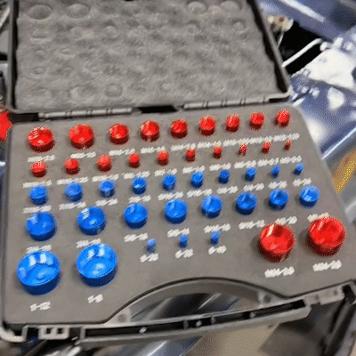 Nut and Bolt Size Storage Box: Featuring clear nut and bolt labels, our gauge organizer box makes nut and bolt identification quick. Foam firmly holds gauges in place for organization. Blue aluminum plated for inch size. Red aluminum plated for metric size.